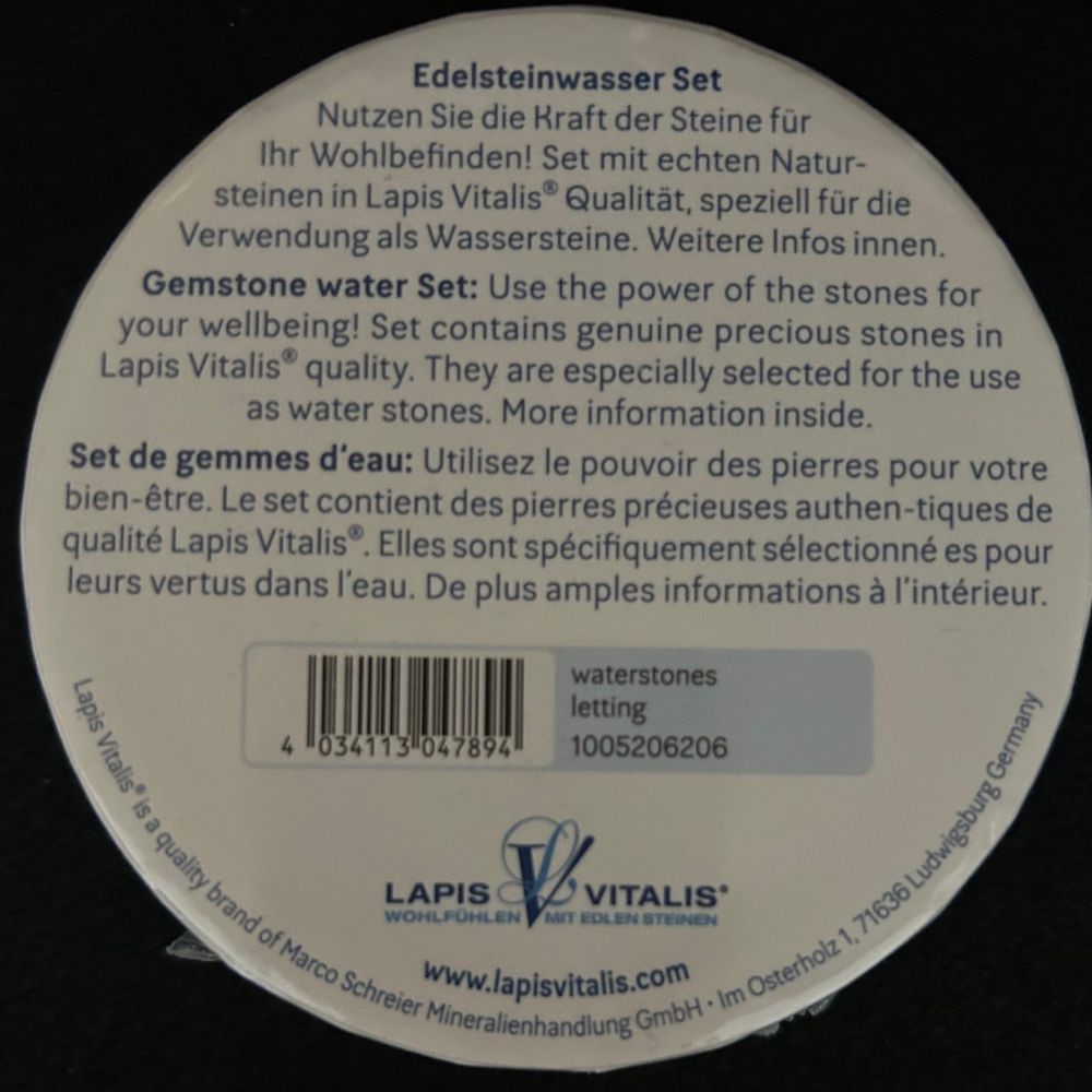 Du erhältst die Natursteine in einer praktischen Geschenkdose, mit Kurzanleitung zur Herstellung und Anwendung des Edelsteinswassers. Die sorgfältig ausgewählten Rohsteine wurden gereinigt und vorgetrommelt um Splitter und scharfe Kanten zu vermeiden.